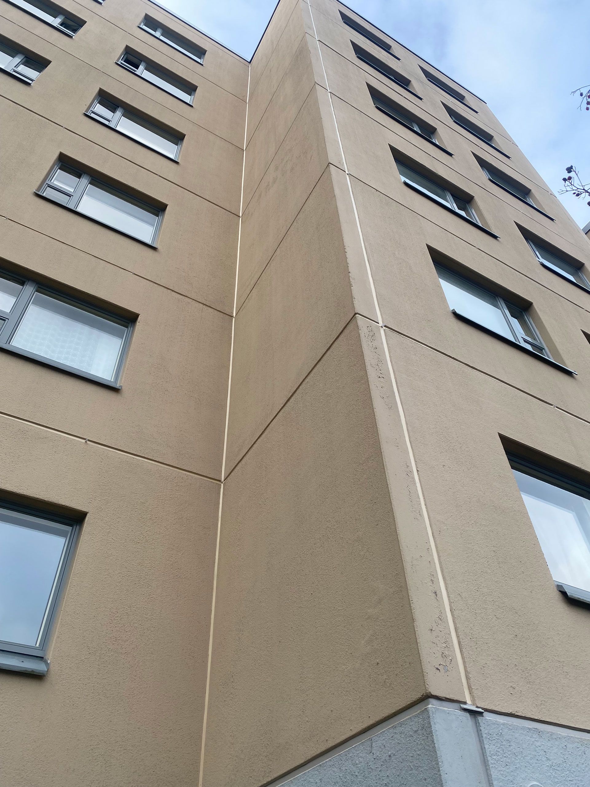 - Rummunlyöjänkatu 5, Espoo, Re-sealing approx. 2800m, facade cleaning and red lichen removal treatment